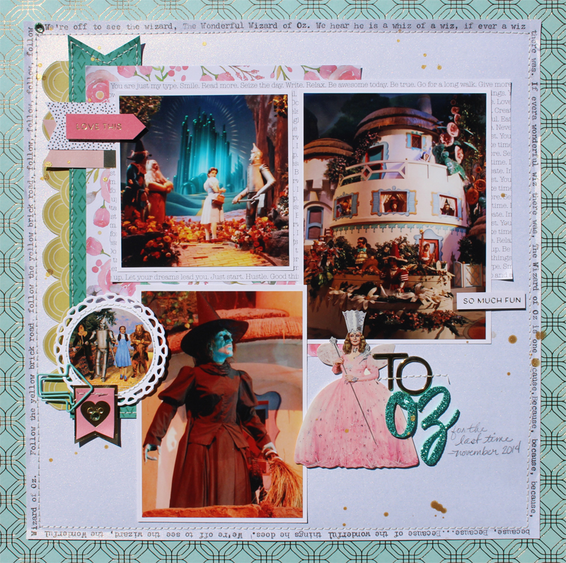 We love the Great Movie Ride at Hollywood Studios and since it may be replaced I wanted to do a page about my favorite part, the Wizard of Oz scene. I used this gorgeous New DCWV Simple Joy stack because the mint and teal reminded me of the Emerald City. I also found 2 really nice Oz stickers to add.